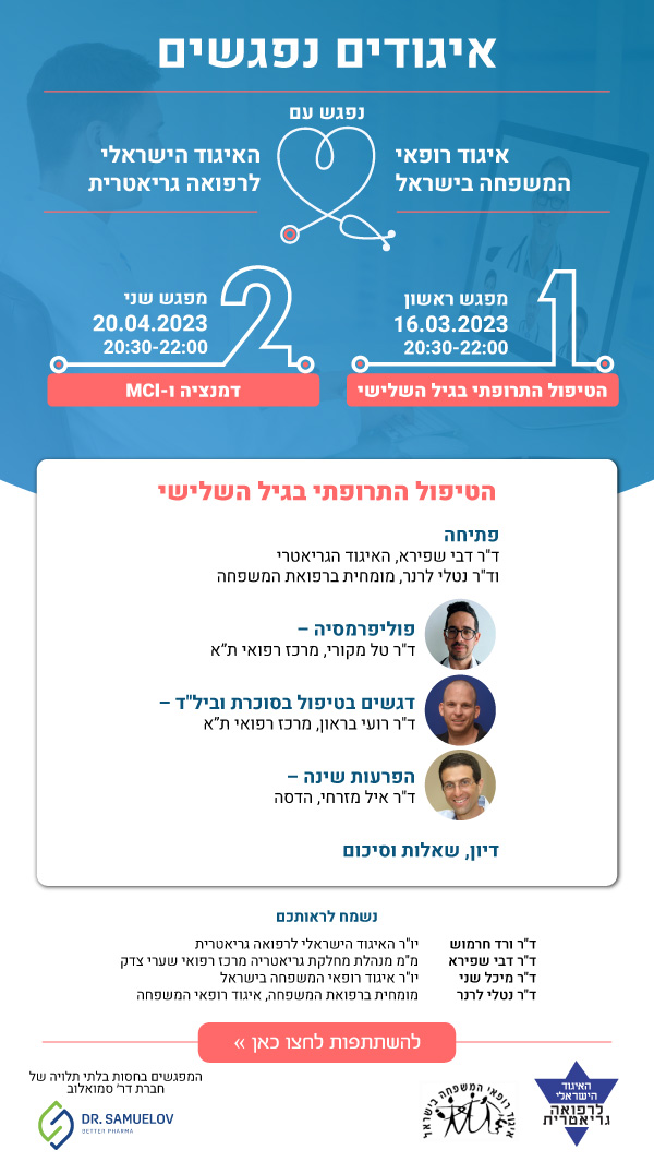 ראשי » אירוע » הצטרפו לסדרת מפגשים של איגוד רופאי המשפחה והאיגוד לרפואה גריאטרית הצטרפו לסדרת מפגשים של איגוד רופאי המשפחה והאיגוד לרפואה גריאטרית תאריך/זמן 16/03/2023 - 20/04/2023 / 20:30 - 22:00 קטגוריות: כנסי האיגוד כנסים בארץ השארת תגובה ביטול חייבים להתחבר כדי להגיב.