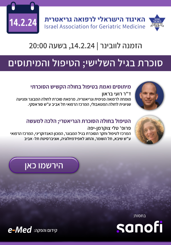 וובינר: סוכרת בגיל השלישי; הטיפול והמיתוסים | 14.2.24| 20:00