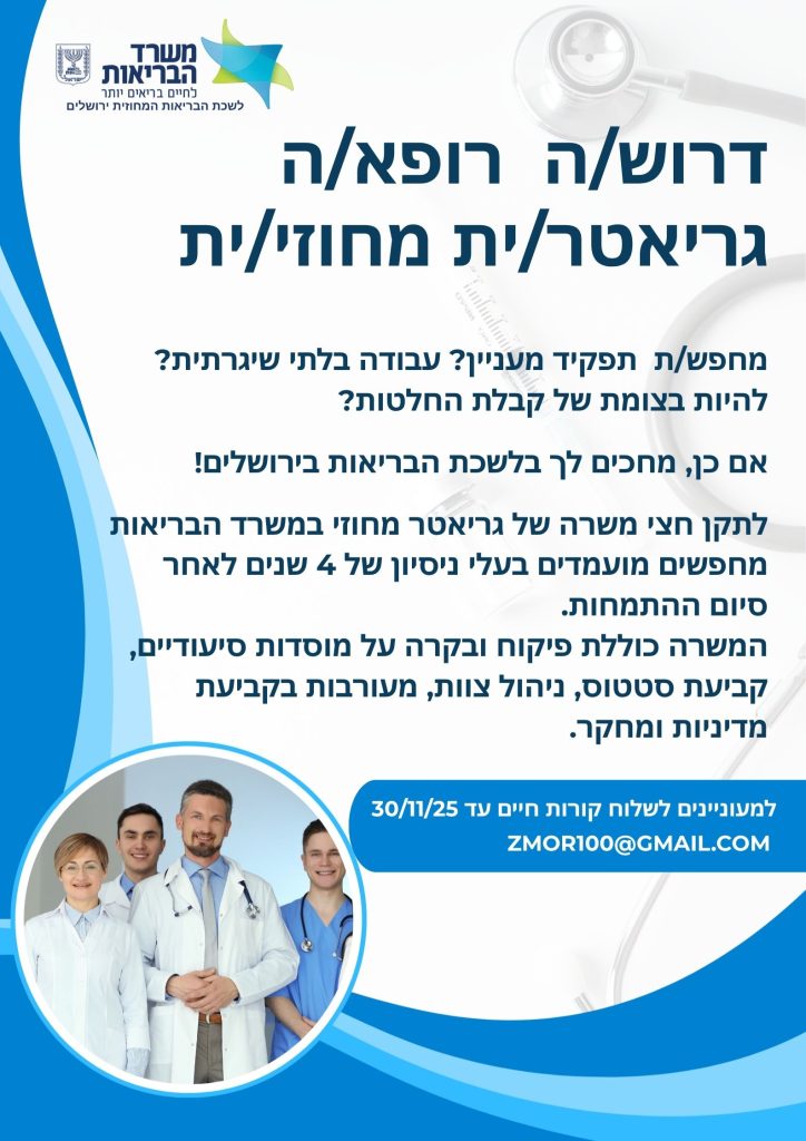 דרוש/ה רופא/ה גריאטר/ית מחוזי/ת ללשכת בריאות ירושלים