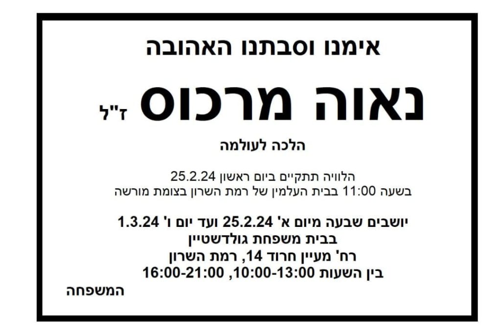 יושבים שבעה מיום א׳ 25.2.24 ועד יום ו׳ 1.3.24
